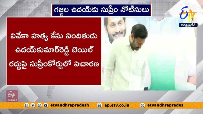 HomeVideo News Supreme Court issues notices to Gajjala Uday, accused in the Viveka murder case Friday, December 19, 2025 By awposter Share FacebookTwitterPinterestWhatsApp Tags: #AndhraPradesh, #SupremeCourt, #GajjalaUday Tags#AndhraPradesh#GajjalaUday#SupremeCourt#YSVivekaMurderCase Share FacebookTwitterPinterestWhatsApp Previous article Allu Arjun Visits Pawan Kalyan Following His Return From Singapore After Mark’s Fire AccidentNext articleAP SIT Issues Notices to Vijay Sai Reddy in Liquor Scam Related Articles Movie News Baahubali-The Epic sets a new benchmark in Re-release Movie News Meenakshi Chaudhary’s NC24 first look delayed Movie News Suriya’s Karuppu targets Republic Day weekend? !!!!!!!! Hiring content writers !!!!!!!!!Contact us : [email protected] Latest Articles Movie News Baahubali-The Epic sets a new benchmark in Re-release Movie News Meenakshi Chaudhary’s NC24 first look delayed Movie News Suriya’s Karuppu targets Republic Day weekend? Movie News Lokah Chapter 1 finally arrives on OTT Movie News Suriya to collaborate with another Telugu director? Movie News This B’Town actress roped in for Lokesh Kanagaraj’s next Movie News Latest update on Ram Charan’s Peddi Movie News Kantara: BMS reveals the total tickets sold ahead of OTT Movie News Aaryan Telugu release has been delayed by a week Movie News Buzz: Ravi Teja’s multi-starrer with this young hero Load more
